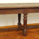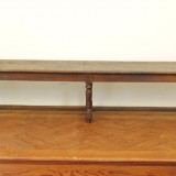 the long rectangular top above a conforming frame supported by turned legs connected by a double h-form stretcher