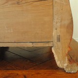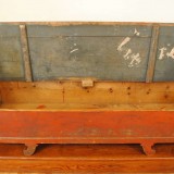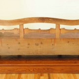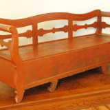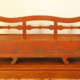 the curved back rest and flared side rests with decorative stretchers, having an interior storage area and raised on curved feet, as the name implies the kitchen sofa was used in the kitchens on small farms or by poor working people in towns and was used as a bed during the nights