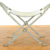 having a concave seat with extending figural castings of griffins, the x-form legs having floral decorations and joined by thin stretchers, the frame resting on twisted and flattened feet