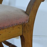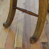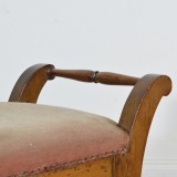 Constructed entirely of light walnut in the Empire style, featuring classically scrolled legs, the handles and stretchers are turned, with upholstered seats.