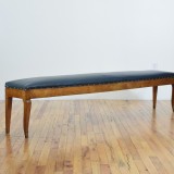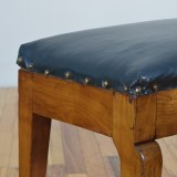 The green vinyl upholstered top above a conforming frame, the front legs slightly cabriole, the rear tapered and straight.