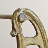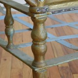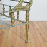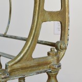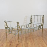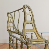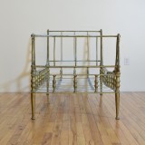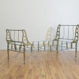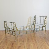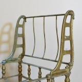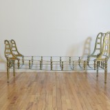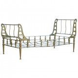 Entirely constructed of cast iron, the frame of "sleigh" form with the head taller than the foot, the centre section with bobbin form supports, raised on circular tapering legs, lacking mattress.