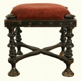 Spanish Louis XV StyleCarved Walnut and Upholstered Bench