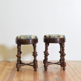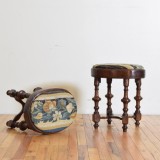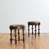 GermanPoplar and Leather Upholstered Tall Stool