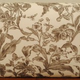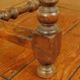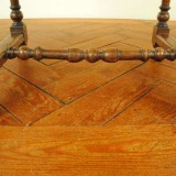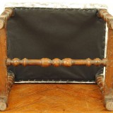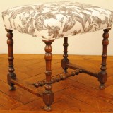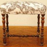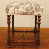 the upholstered top supported by four turned legs joined by a h-form stretcher