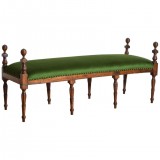 Carved Walnut and Upholstered Bench