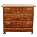 Italian, Piemonte, Rococo PeriodCarved Walnut and Inlaid 2-Drawer Ribalta
