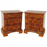 Pair of Walnut & Pearwood 3-Drawer Commodes