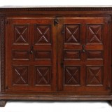 Italian, Bologna, Baroque PeriodWalnut and Brass Decorated Credenza