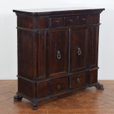 French Louis XIV/XV PeriodRare Carved Walnut Buffet, Marrone Fossilized Marble Top