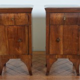 Northern Italian Neoclassical PeriodPair of Figured and Shaped Walnut Bedside Commodes