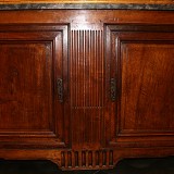 French Louis XIV/XV PeriodRare Carved Walnut Buffet, Marrone Fossilized Marble Top