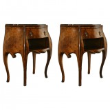 Northern Italian Neoclassical PeriodPair of Figured and Shaped Walnut Bedside Commodes