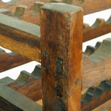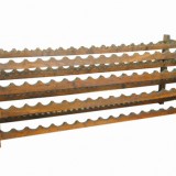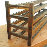 having two ladder-like end supports with stretchers containing grooves for the tops and bottoms of wine bottles. In very good antique condition.