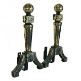 of baluster form with spherical finial, the pitted finish with brass plating over iron with fading throughout consistent with age; in excellent condition, lacking fire irons which will be made to suit buyer