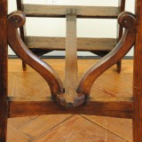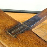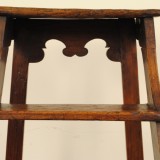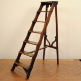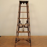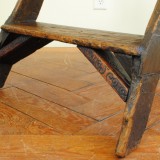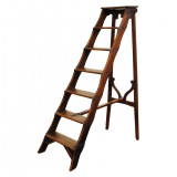 the folding ladder constructed of pine with iron hardware, decorative carving at base