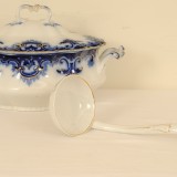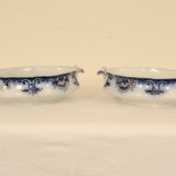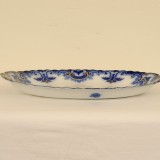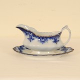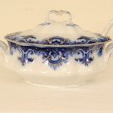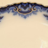 88 piece set of Clifton (Flow Blue-Gold Trim) by GRINDLEY, complete with all of the settings and bowls and platters, etc., printed mark on bottom incorporating a globe and steamer boat, in good condition
