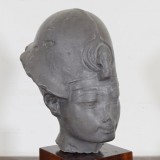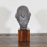 Pewter Bust of Queen Nefertiti of Egypt on Macassar Wood Pedestal
