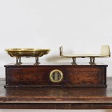 Walnut and Brass Kilogramme Scale and Weights