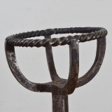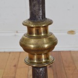 Having spiral twisted open basket finials with a centered turned brass element, with splayed shaped feet.