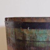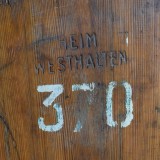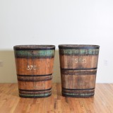 the buckets are made of multiple planks of wood bound by iron straps, retaining original paint and numbers, stenciled "Heim Westhalten", heim translates to home. Westhalten was formerly part of the German Empire from 1871 unil the end of World War 1 and is now part of France