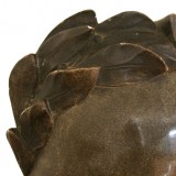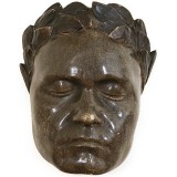 The mask depicting a deceased Ludwig Van Beethoven wearing a crown of laurel leaves, the reverse showing hand carving and having a German emblem.