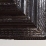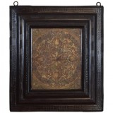 The Italian, 18th-19th century panel polychrome painted and tooled in a 17th century guilloche ebonized frame.