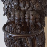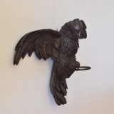 in excellent condition, beautifully carved with detailed feathers and talons, the eyes painted, retaining iron ring which was likely used for a fabric enclosure atop a poster bed