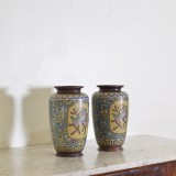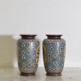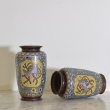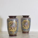 Pair of Cloisonne Multicolored Vases with Birds, Flowers, and Serpents