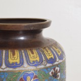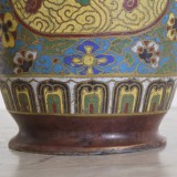 Bronze vases with applied enamel decoration outlined in brass, lotus leaves, foliate patterns, birds and serpents, each stamped on bottom, 19th century.