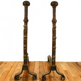 Pair of Tall Cast and Wrought Iron Andirons with 4 Sets of Brass Finials