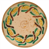 Coarse and strong, this pottery was made for the migrant workers of Portugal from the late 19th to early 20th century in Coimbra, Portugal. They are highly recognized and collectible as they represent the work of simple artisans with limited technical means. They achieved widespread popularity due to their imaginative and vibrant designs. In good condition, wear consistent with age and use.