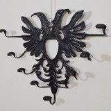 The double-headed eagle motif was used as a symbol for the idea of a strong Empire. The two heads symbolize dominance over the East and the West. This motif was used as a coat of arms for aristocratic families from the 12th century until the early 20th century all over the world.