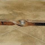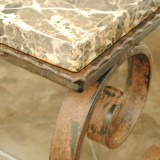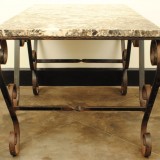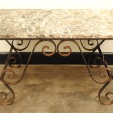 the base a series of connected s-scrolls with a rectangular frame holding the marble top