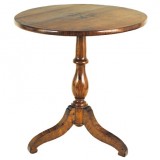 having an ashwood veneered tilting top with mixed inlays, above a turned pedestal on a tripartite base, the legs ending in slightly underturned feet. In excellent antique condition, cuts at bottom of top used to straighten
