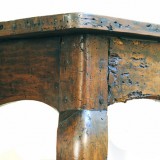 having a four board top with a shaped apron on cabriole legs. In very good antique condition, rustic with a well worn patina.