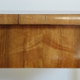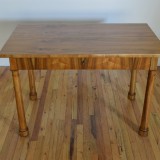 Impeccably restored and having rectangular top and a conforming case housing one drawer, raised on columnar legs terminating in disk feet, marked on the interiors "Residenz Salzburg 2272", having working locks with keys, the third of these tables currently in the depository of the MAK Museum of Vienna also known as the Museum of Applied Arts.