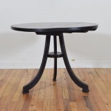 Round top, tilt-top, tripartite base.