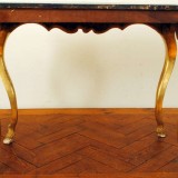 Italian, Naples, Neoclassical PeriodShaped Cherrywood and White Granite Demilune Console Table