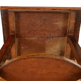having a tray top with a gallery and inlaid with a Bois Clair cross, most likely an altar table in a private chapel, supported by trestle-form legs and joined by an oval stretcher