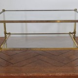 Italian Mid-Century ModernBrass, Rosewood, and Glass Bar Cart on Casters