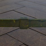 painted a greenish-yellow and having square legs joined by a shaped stretcher