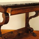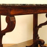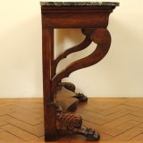 Carved Walnut 1-Drawer Console Table with Marble Top