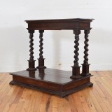 Oversized prayer bench with spiral turned supports and molded edge capitals, the lower plinth section raised on small feet.