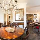 Consoles likely from Palermo, Italy and having inset rectangular marble tops and a raised edge, with a patterned ebonized and gilded molding, housing one drawer flanked by period bronze hardware, raise on bowed front legs and straight rear legs, the stretchers straight at wall and curved at front, resting on carved ebonized and gilded feet, second quarter of the 19th century.