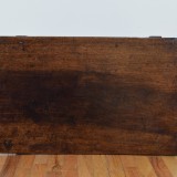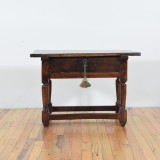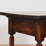 the rectangular top above a conforming case housing one drawer with original lock and key, raised on turned legs with a box stretcher