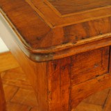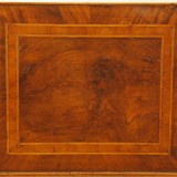 the rectangular top veneered with walnut and fruitwoods, the galleried molded edge of concave form, resting atop a frame housing one locking drawer with shield-form escutcheon, raised on cabriole legs extending to three sided block feet, in excellent condition