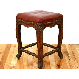 Carved Walnut and Red Leather Stool