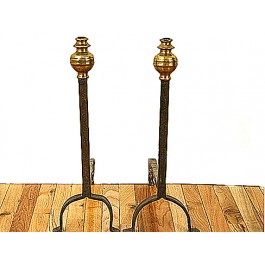 Pair of Iron and Bronze Andirons