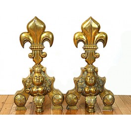 Pair of Bronze Fleur De Lis Andirons